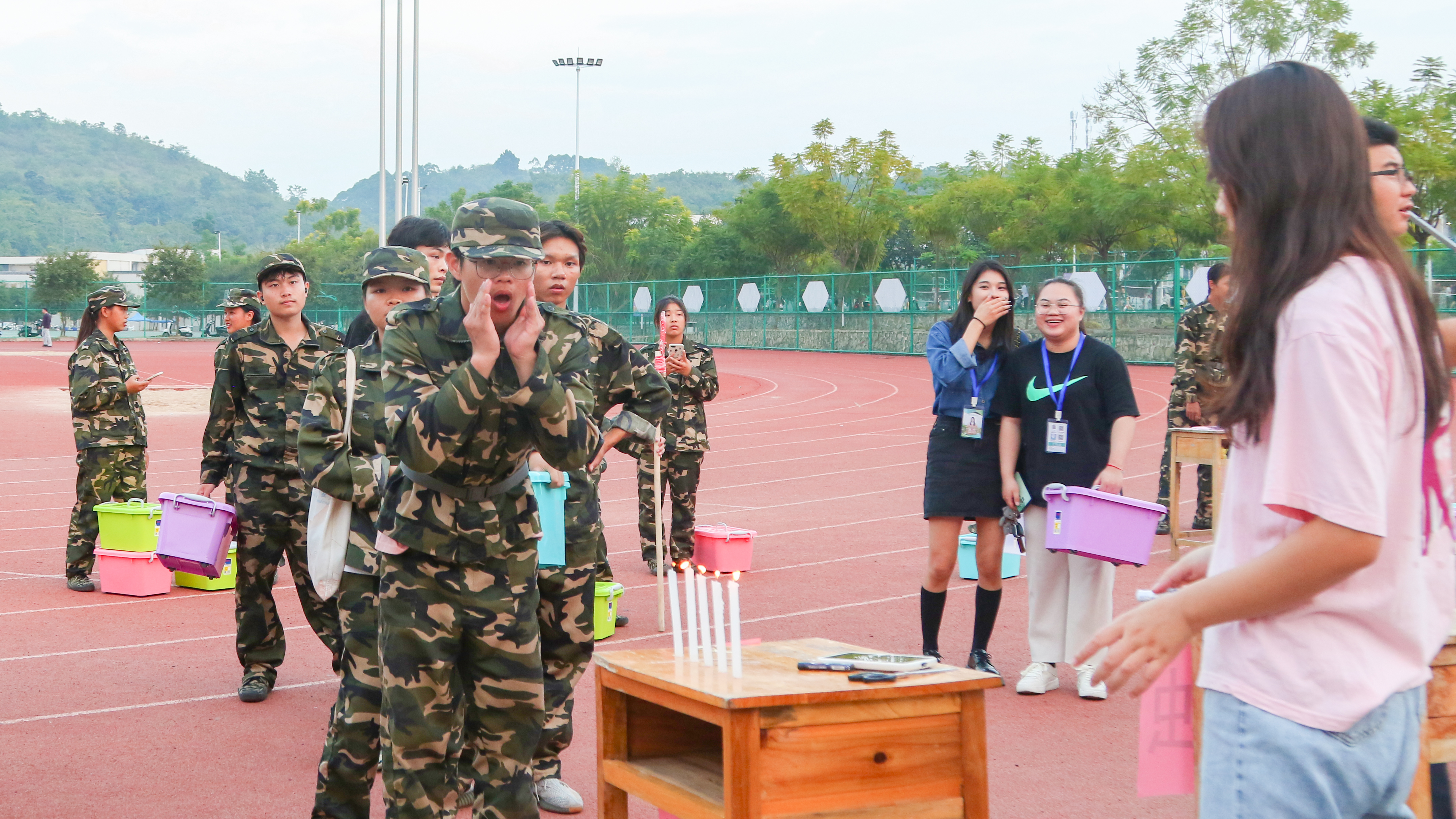 同学们在参加吹蜡烛游戏