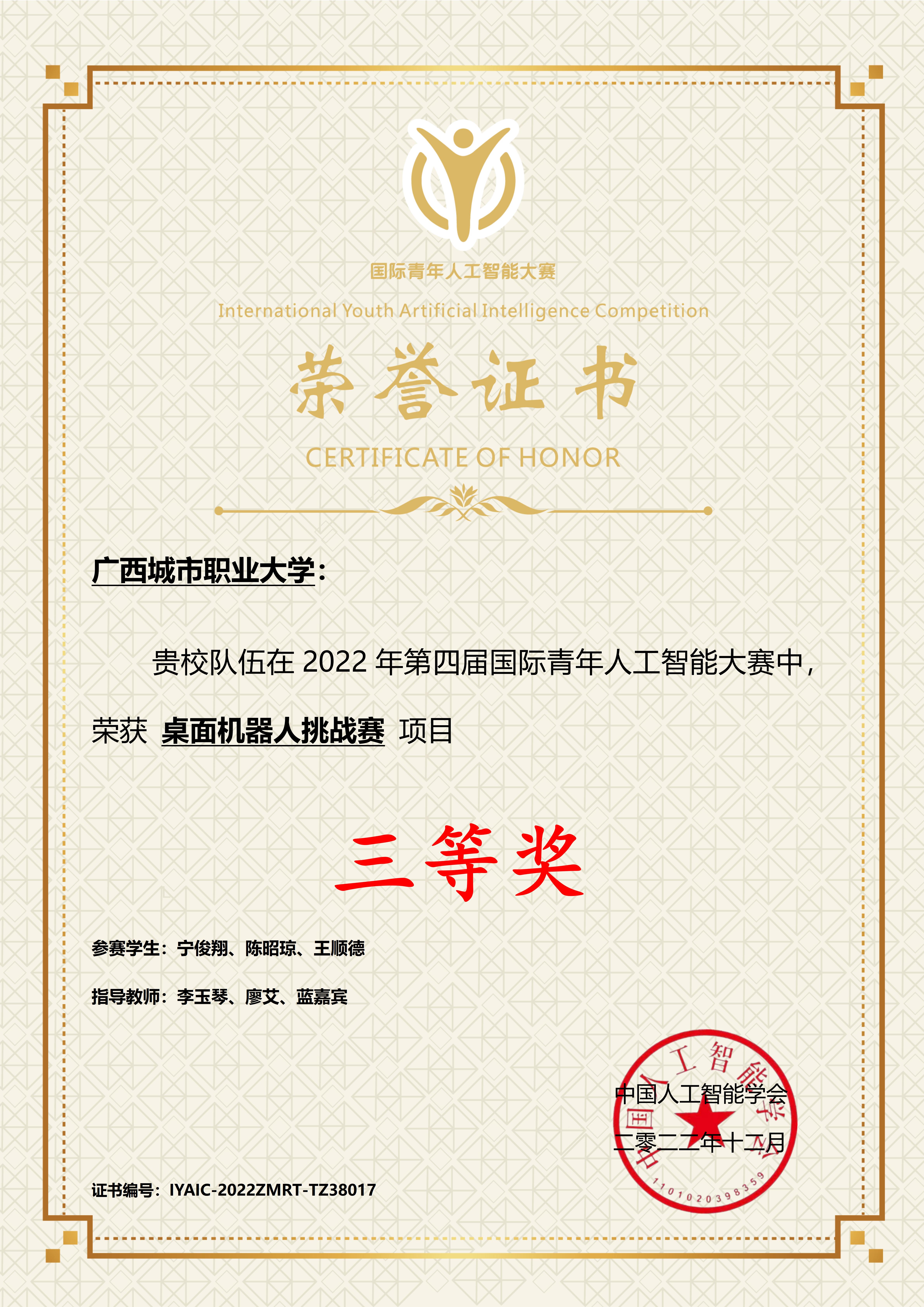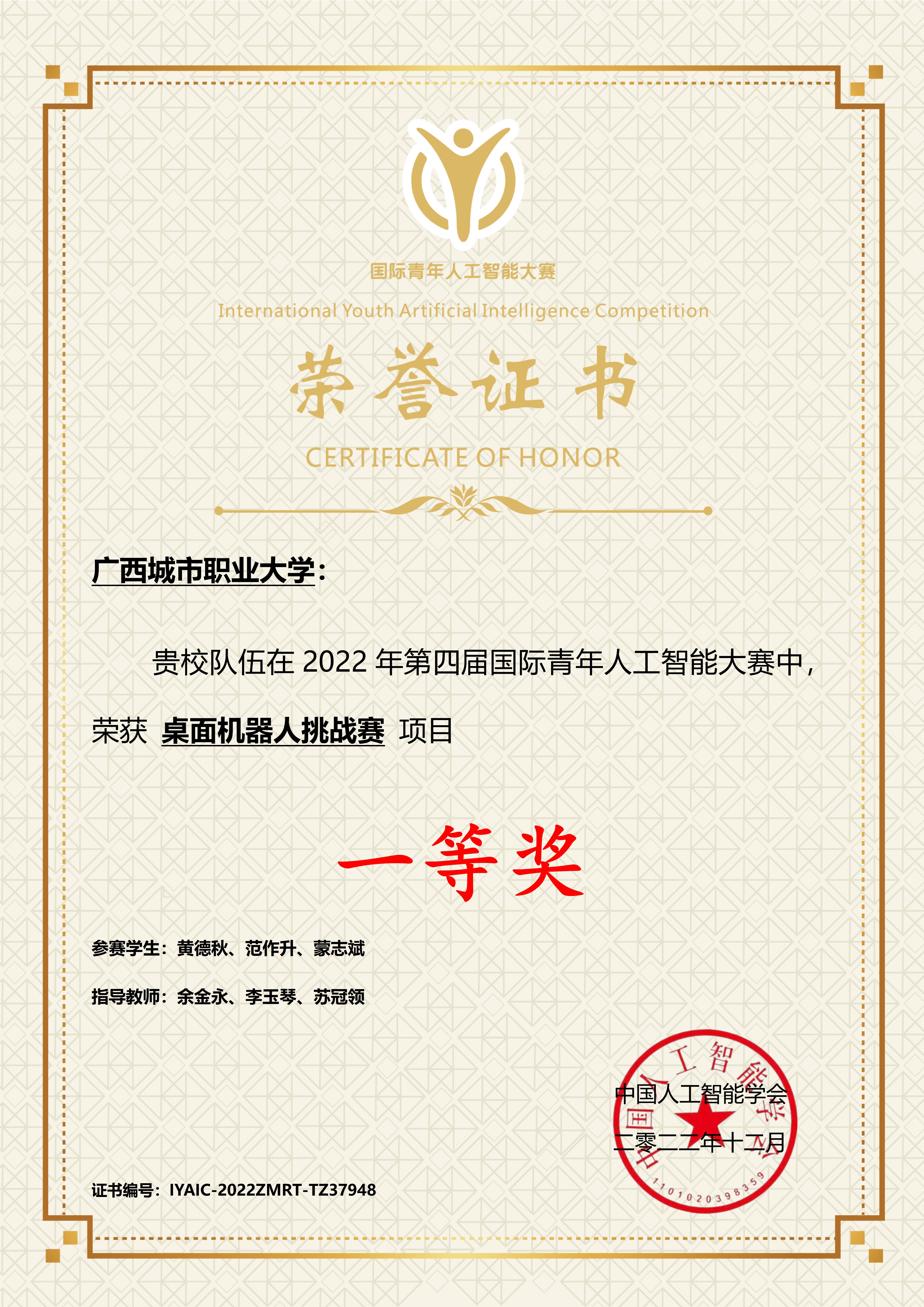 近日,中国人工智能学会公布了2022年第四届国际青年人工智能大赛结果,完美(中国)一站式服务平台智能工程学院学子斩获1个一等奖、2个二等奖、1个三等奖。