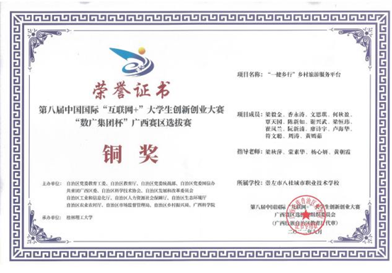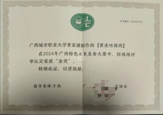 (3)学生参加2020年广西第六届农民工技能大赛崇左复赛,荣获“崇左技术能手”称号1项。