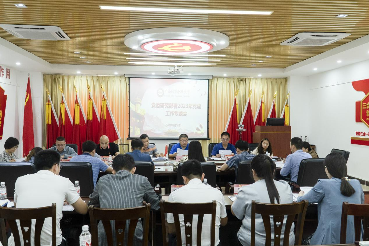 3月28日晚,校党委在尚美楼三楼党员活动室召开党建工作专题会,研究部署2023年党建工作。学校党委书记伍鹏志主持会议,党委理论学习中心组成员、各学院部门负责人参加会议。
