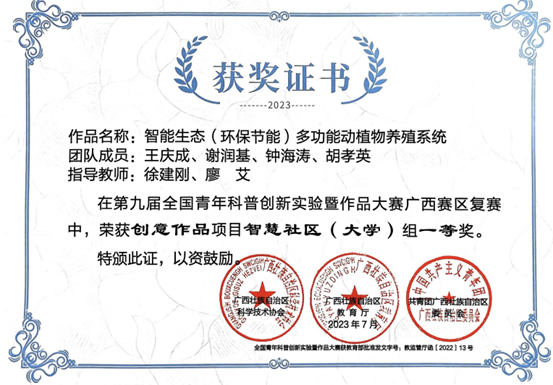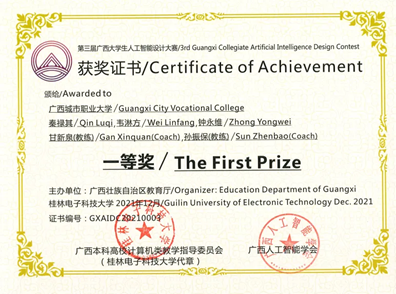近两年,本专业教师曾指导学生参加“西门子杯”中国智能制造挑战赛、广西大学生电子设计竞赛、广西职业院校技能大赛、广西青少年科技运动会等各级各类竞赛获奖共计12项,其中国家级一等奖1项,三等奖3项,省级一等奖3项,二等奖2项,三等奖3项。