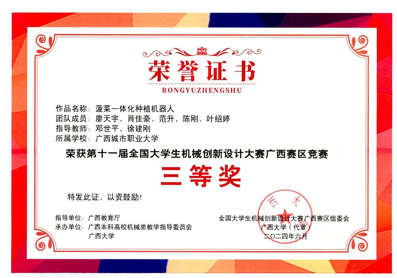 近两年来,本专业学生在全国三维数字化创新设计大赛、全国大学生电子设计竞赛、全国大学生机械创新设计大赛、“西门子杯”中国智能制造挑战赛、广西大学生人工智能设计大赛等各级竞赛获奖共计21项,其中国家级2项,省部级14项,行业企业比赛5项。
