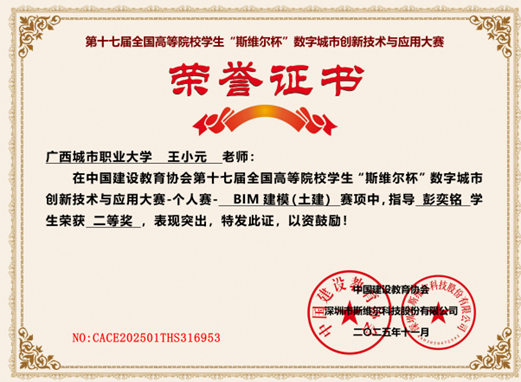 智能建造工程专业注重学生职业技能和职业素质的培养。鼓励学生积极参与各类行业企业的专业竞赛。促进学生掌握各项专业的基本技能,夯实专业能力。以下为部分获奖证书: