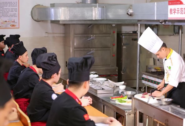其中烹饪工艺与营养实训基地占地面积1000平方米,教学仪器设备人均值达到1.05万元,大部分教室是理实一体化实训室,包括教学示范区、刀工训练区、中式烹调理实一体化实训室、西式烹调理实一体化实训室、中式面点理实一体化实训室、西式面点理实一体化实训室、雕刻理实一体化实训室、原料储藏区、学生刀具收纳等七大功能区,能够满足烹饪工艺与营养专业所有实训课程教学和实训的需要。