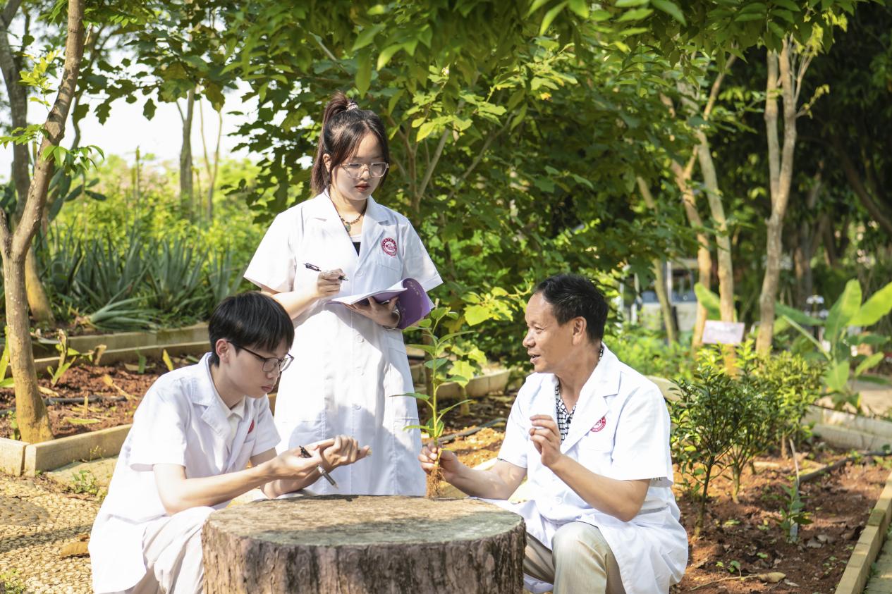 专业注重理论与实践深度融合的教学模式,课程设置凸显专业性与实用性。理论教学体系完整,涵盖中药基础、临床应用、产业管理等全链条知识;实践教学内容丰富、操作性强,开设《中药炮制技术》《药膳食疗学》《壮瑶药辨识技术》等课程,使学生在掌握现代中药技术的同时,深耕壮瑶药传统技艺,全面提升专业技能。创新“双导师+双路径”育人模式,学校导师传授理论知识,企业导师指导实践技能,实现“校内实训+岗位实习”无缝衔接。引入行业资深银龄教师,通过“传帮带”提升教学与科研水平;构建“产供销研创一体化”教学模式,依托国粹百草园、大健康产品生产实践基地等平台,将中草药种植、炮制、研发、销售全流程融入教学,强化学生实践应用与创新能力。